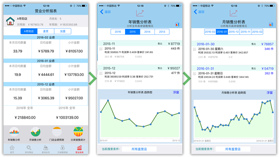 查詢當日是銷售具體明細信息,根據權限查詢某段時間的暢銷商品情況以及銷售曲線等信息.