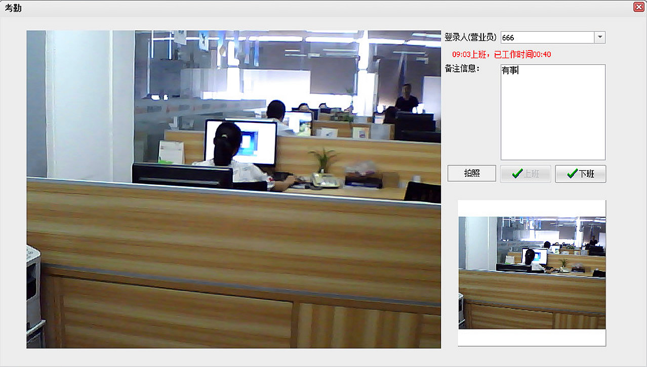 在軟件中增加在線電子考勤管理理念,員工正常上下班需要通過電子拍照來(lái)完成,方便店面日常經(jīng)營(yíng)管理工作。客戶還可以選購(gòu)指紋考勤模塊。