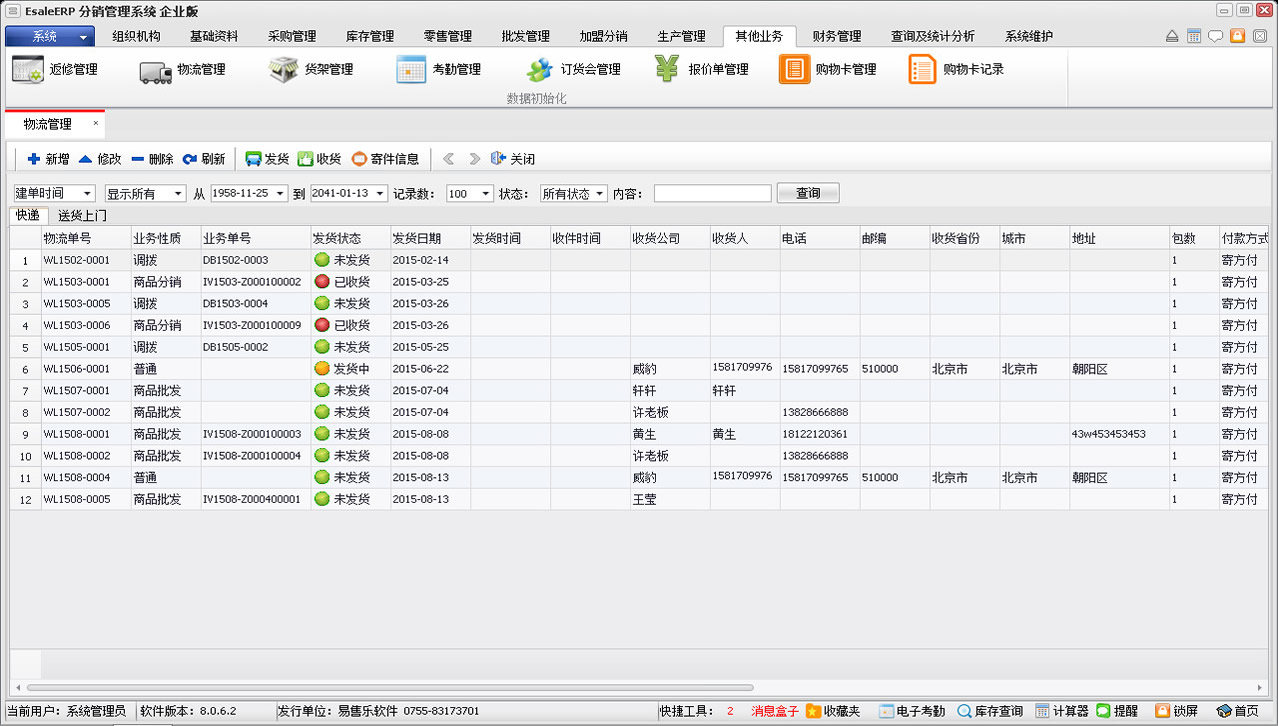 在零售、批發(fā)、分銷、調(diào)撥等業(yè)務(wù)管理中增加物流信息同步流程,物流管理包括客戶地址管理、物流發(fā)貨管理、快遞單打印及揀貨發(fā)貨流程,使商品進(jìn)出庫(kù)工作做到井井有條。