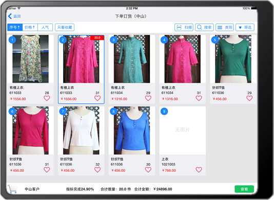 訂貨商品展示:可根據訂貨量,訂貨商品的價格,分類展示所有訂貨商品。所訂貨的商品還可以加入商品,或者加喜愛標簽。