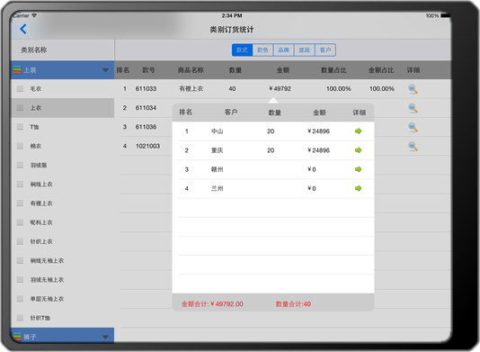 按照分類、價格等信息統計訂貨商品的占比情況,幫助客戶有策略的完成訂貨流程。