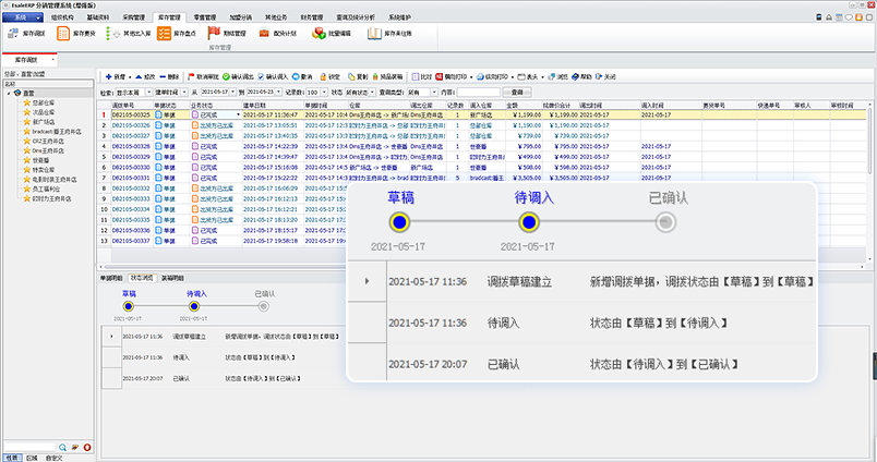以調(diào)撥管理為例,系統(tǒng)監(jiān)控調(diào)撥的制單、調(diào)出、調(diào)入以及各種狀態(tài)下的庫存變化數(shù)據(jù)