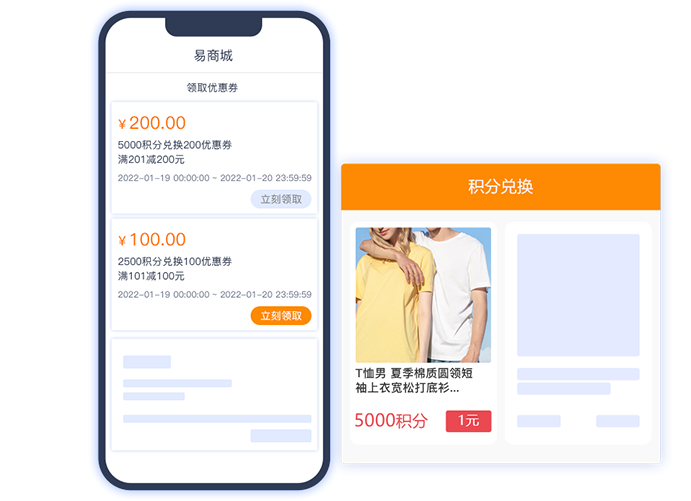 一站式快速開發您的小程序商城,會員購買商品獲得積分,使用積分可兌換積分商品