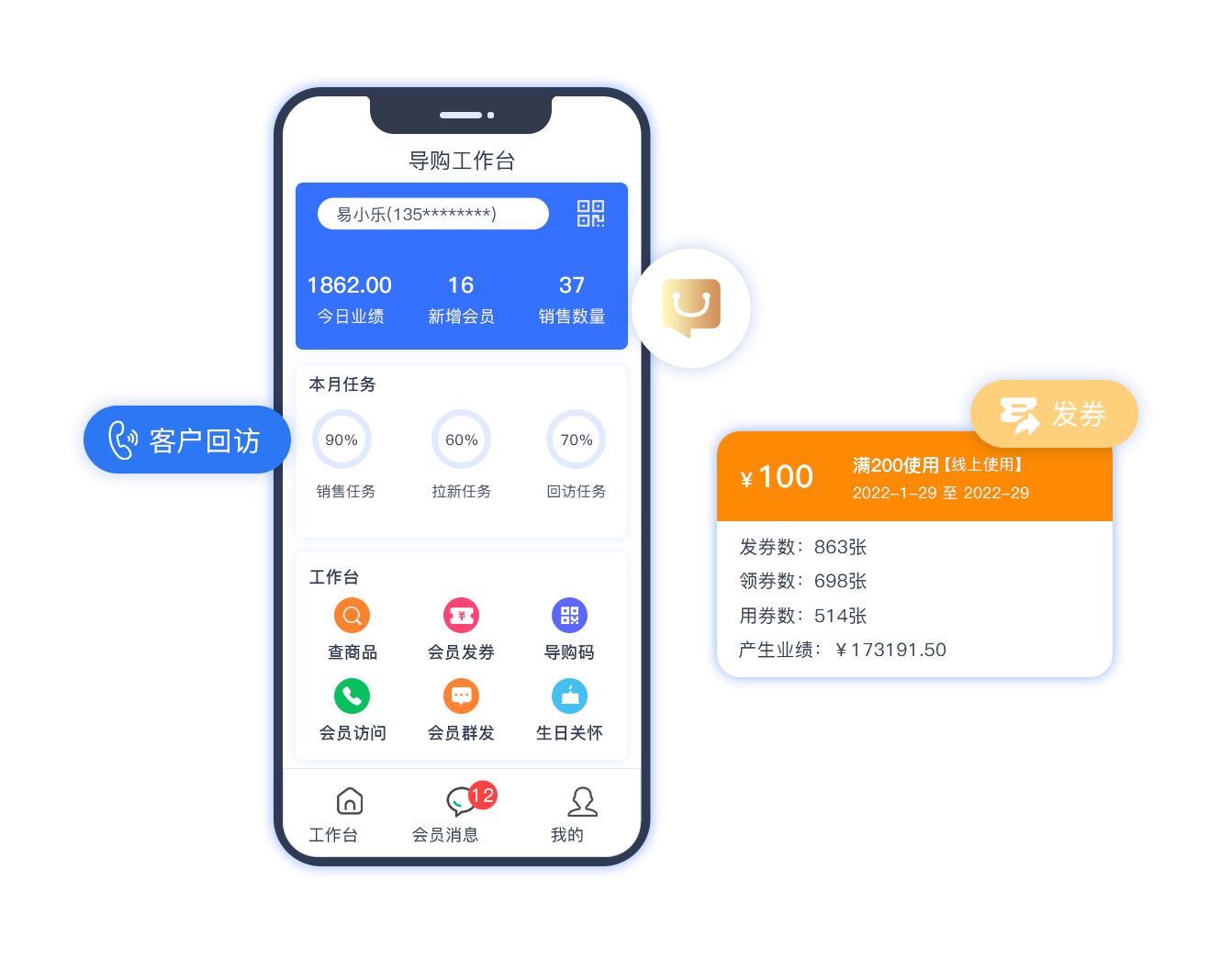 對導購針對性配置銷售任務,如回訪、拉新、銷售等,有效的對導購工作任務進行管理。