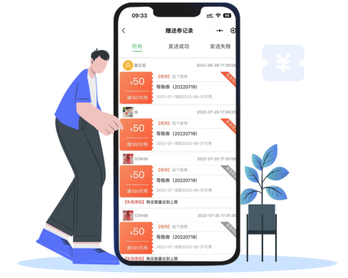 顧客加入門店會員后,系統自動發送新人優惠券,導購員可以發送導購專屬優惠券。優惠券種類繁多,可以設置優惠券的使用方式。