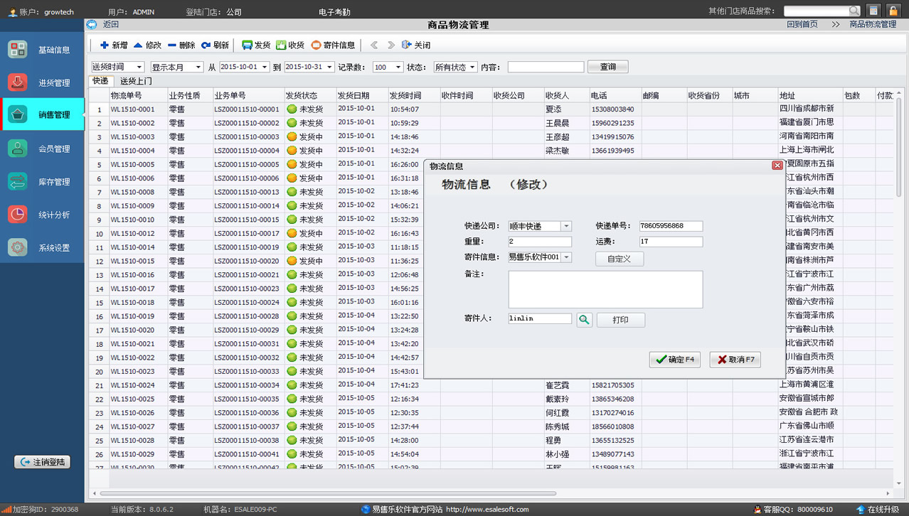 采用快遞和上門送貨兩種主流管理模塊,支持快遞打印和單號管理并落實到具體責任人,讓物流管理工作嚴謹、規模化。