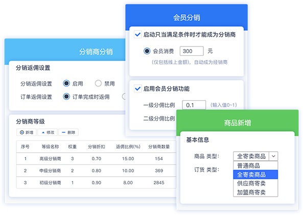 亮點:使用易售樂智慧分銷加盟系統,無縫連接商家、代理分銷員,自由設置各等級分銷價格、目標及對應傭金;